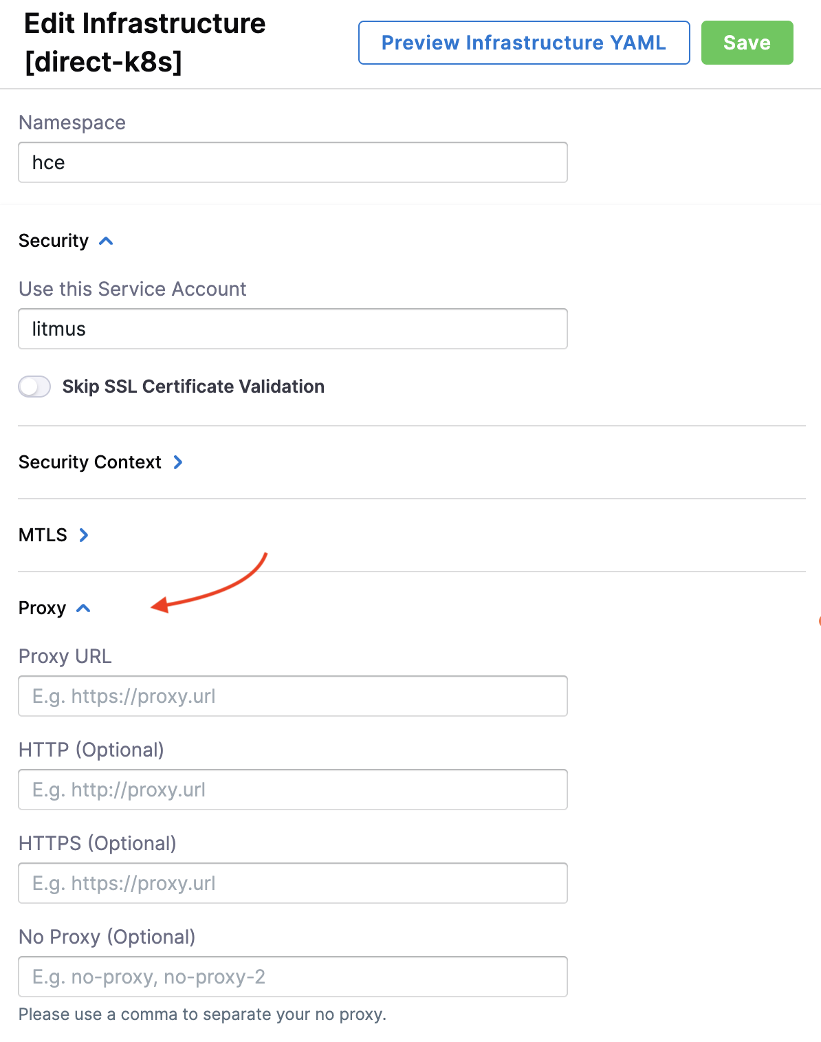 - In case you already have a proxy set up, you can provide the URL of the proxy in the UI.