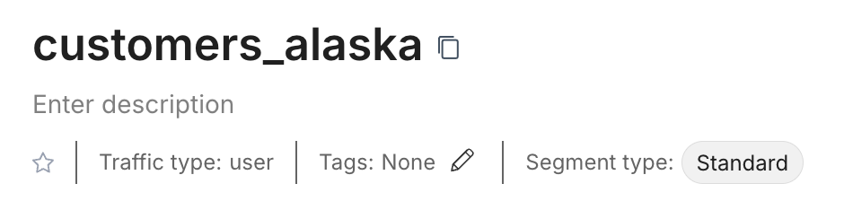 When creating a segment, the segment name, description, owners, and tags can help you and your team later manage your segment. This information can be customized to your team's workflow.