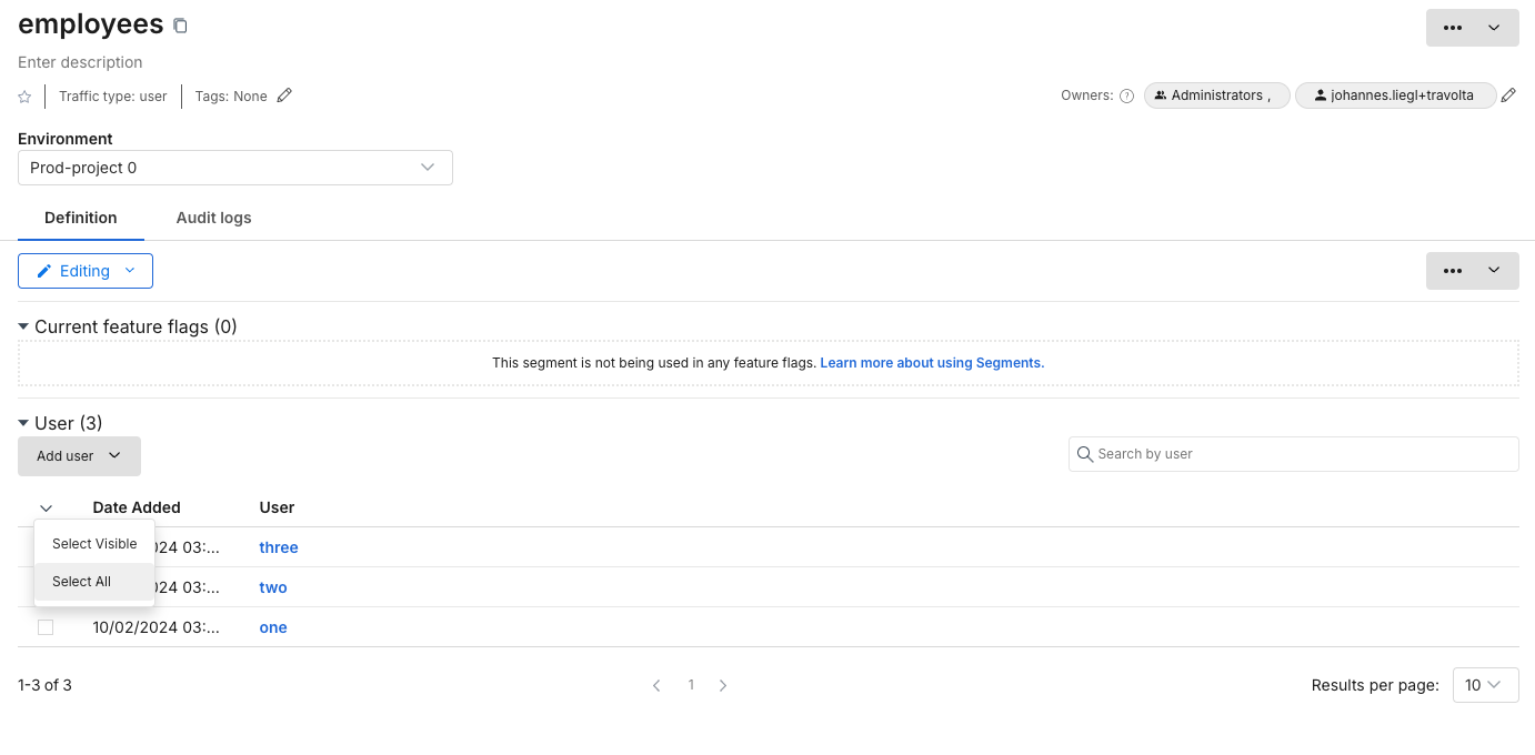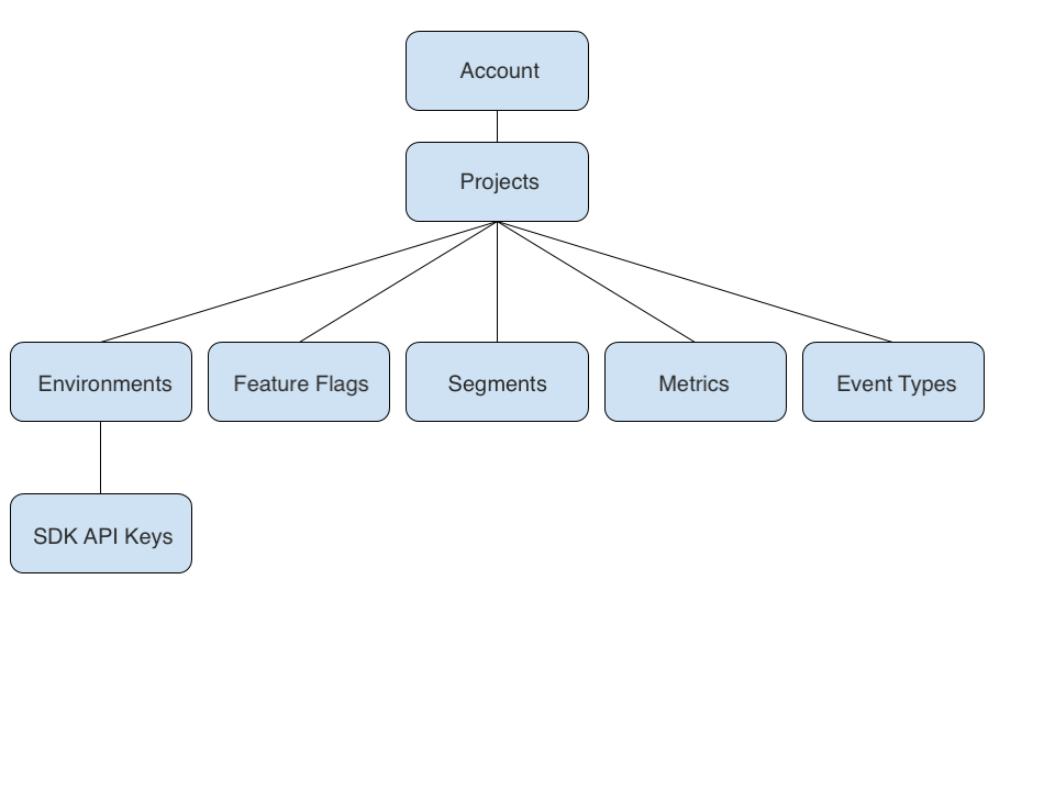 These objects include feature flags, segments, metrics, traffic types, and environments. This also allows you to determine who can see if a certain project exists.