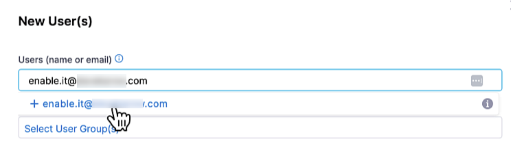Click + New User at the top left of the screen. The New User(s) dialog will appear.