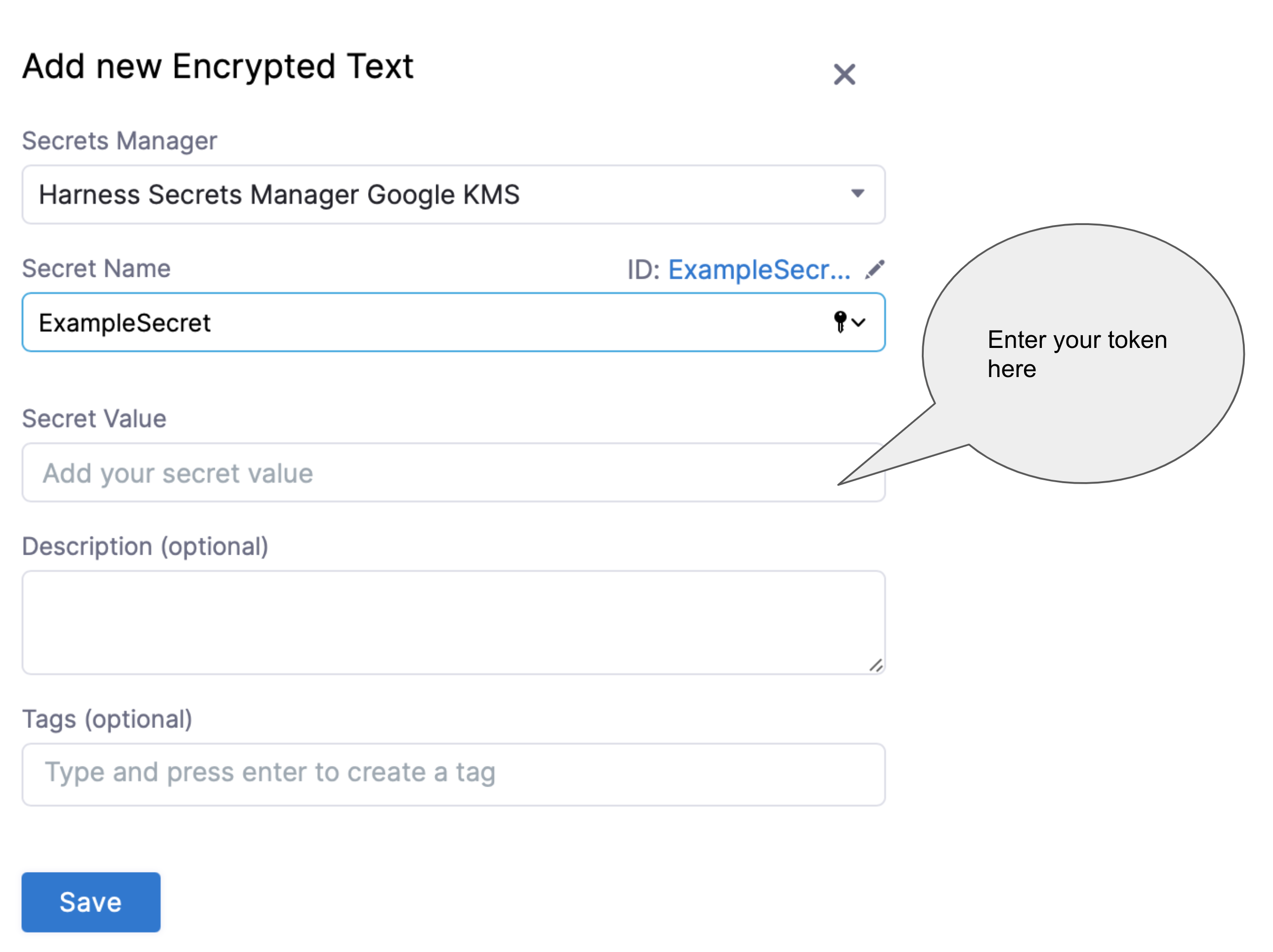 You can choose to update the ID or let it be the same as your secret manager's name. For more information, go to Entity Identifier Reference.