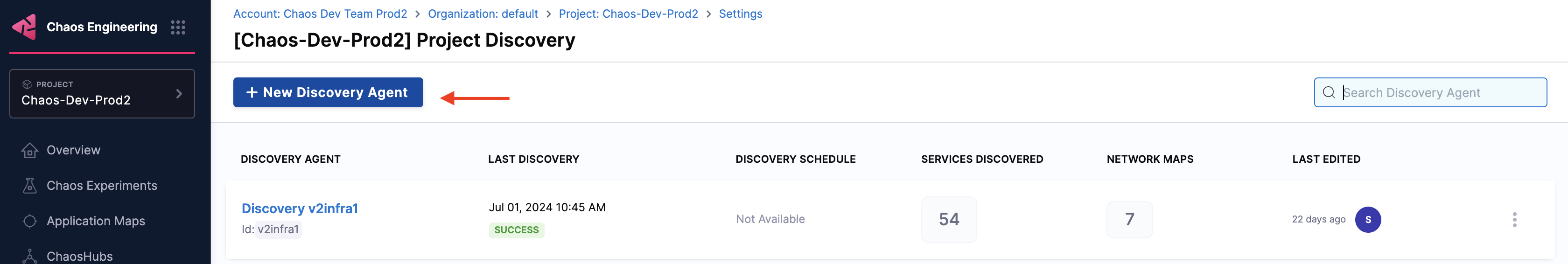 Click Create New Discovery Agent on the top right corner of the page.