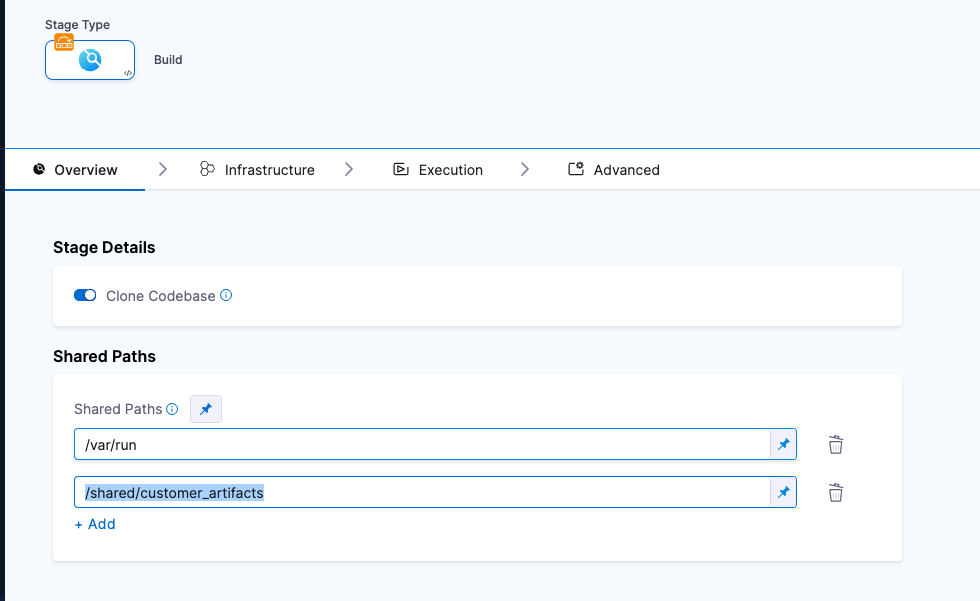 In Shared Paths, enter a path to a location where your SBOM can be stored on the build machine, such as
